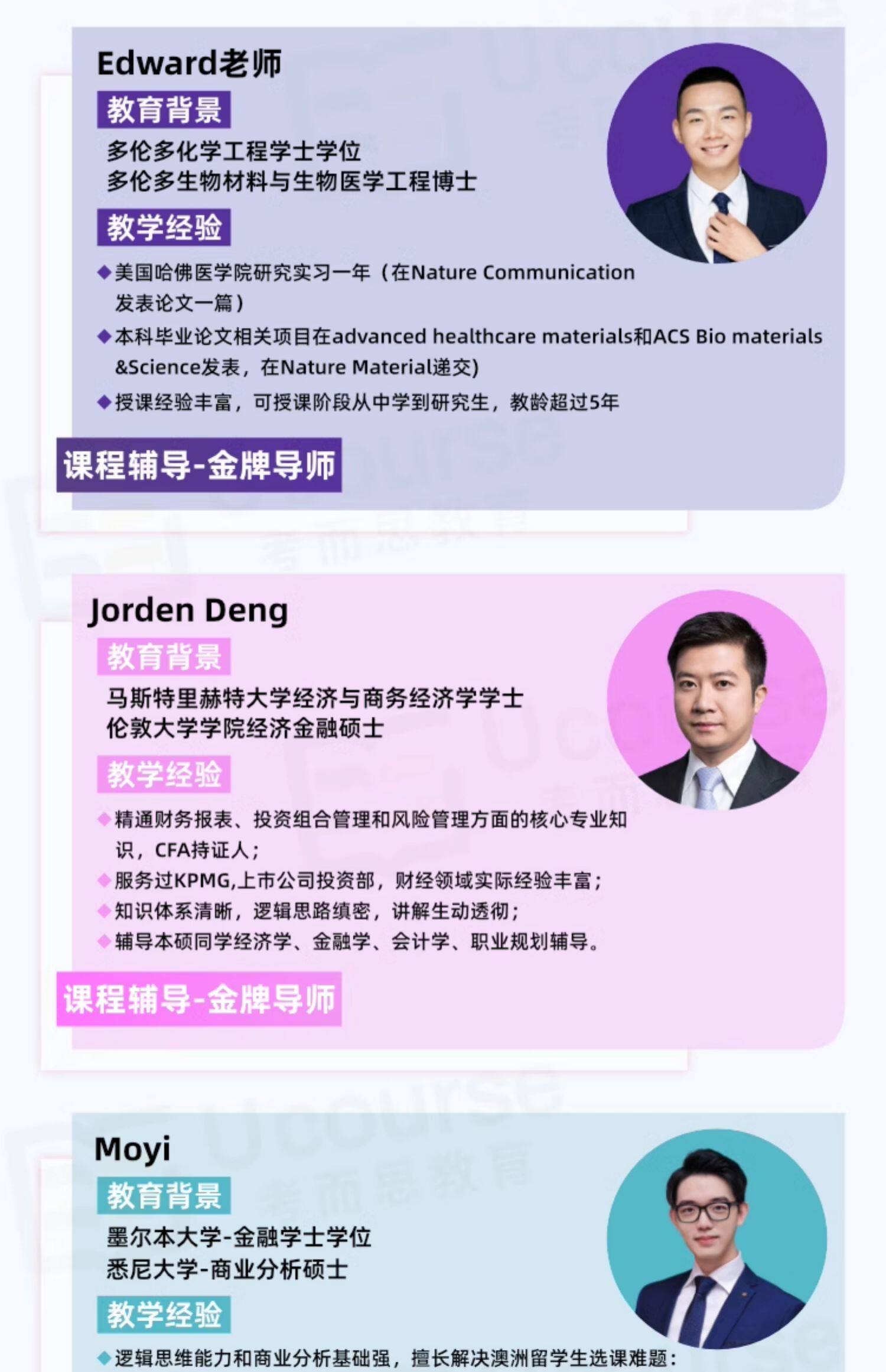 教学部精准匹配授课老师,提供老师背景等资料